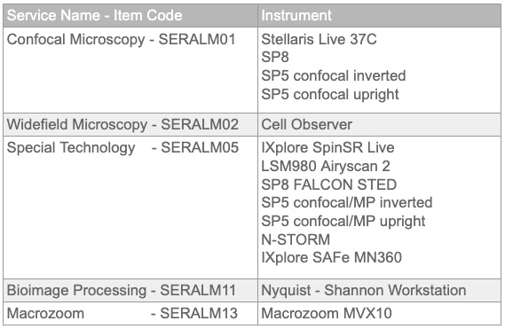 - User access to state-of-the-art microscopy systems