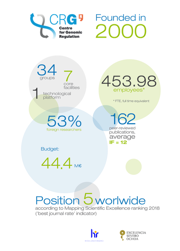 The Centre for Genomic Regulation (CRG) is an international biomedical research institute of excellence, based in Barcelona, Spain, whose mission is to discover and advance knowledge for the benefit of society, public health and economic prosperity.