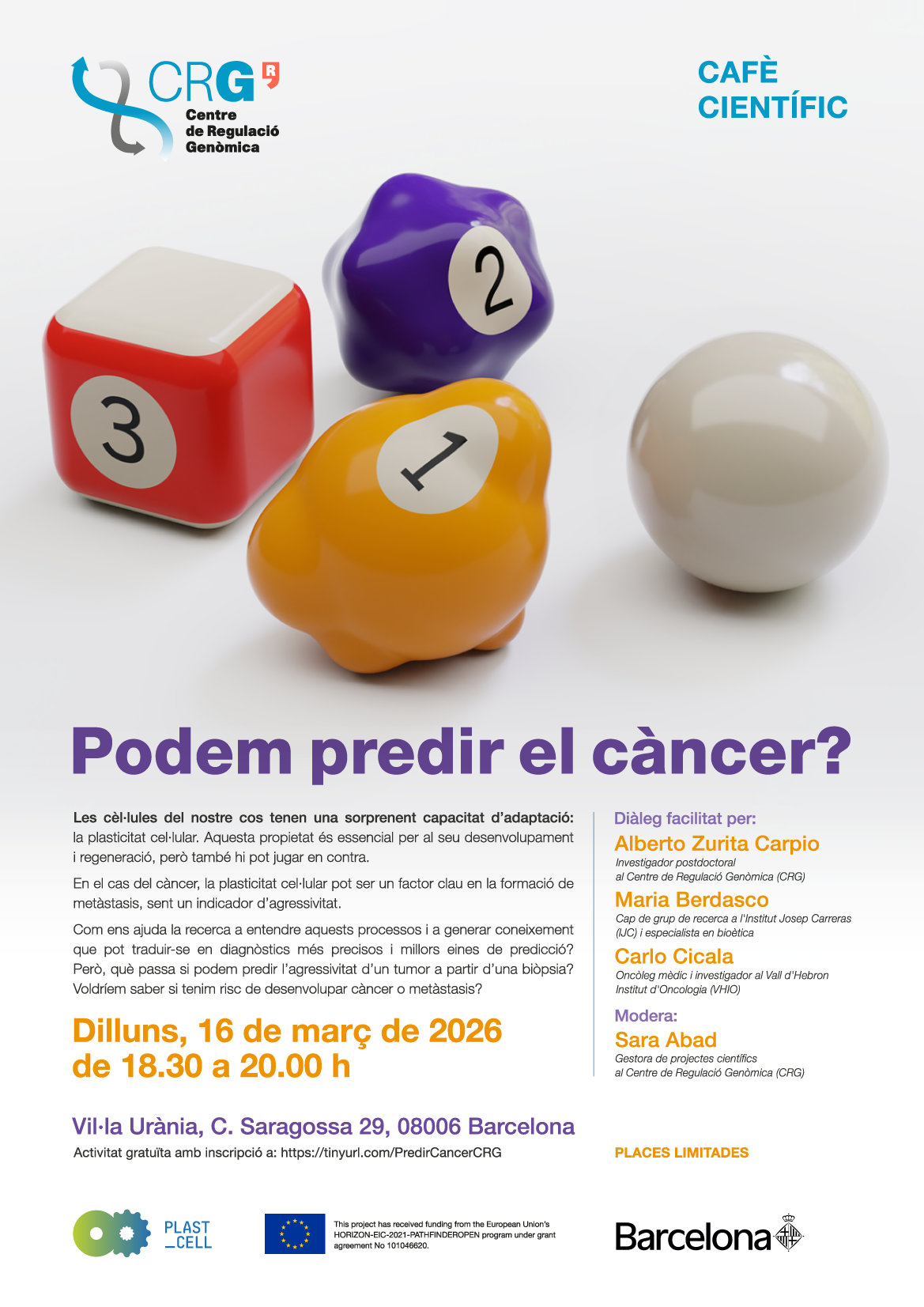 Les cèl·lules del nostre cos tenen una sorprenent capacitat d’adaptació: la plasticitat cel·lular. Aquesta propietat és essencial per al seu desenvolupament i regeneració, però també hi pot jugar en contra. En el cas del càncer, la plasticitat cel·lular pot ser un factor clau en la formació de metàstasis, sent un indicador d’agressivitat. Com ens ajuda la recerca a entendre aquests processos i a generar coneixement que pot traduir-se en diagnòstics més precisos i millors eines de predicció? Però, què passa si podem predir l’agressivitat d’un tumor a partir d’una biòpsia? Voldríem saber si tenim risc de desenvolupar càncer o metàstasis?