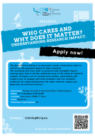The goal of this training is to give early career researchers, especially beginning graduate students, tools to reflect on the potential impact of their research. The workshop will focus both on practical and intangible impact, moving away from a strictly utilitarian view of the value of research outputs. Through a set of curated case studies, participants will explore how to engage with both academic and non-academic audiences by understanding how the same research output may generate very distinct interest (of note, they will also be exposed to the fact that a researcher has limited control over public perception of impact, and trainers will also lead discussion on strategies to navigate these interactions).
