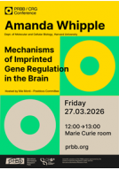 27/03/202612:00MARIE CURIEPRBB-CRG SessionsAmanda WhippleHarvard University"Mechanisms of Imprinted Gene Regulation in the Brain"Host: Postdoc CommunityAbstract:Genomic imprinting is an epigenetic process that drives parent-of-origin–specific gene expression and is essential for brain development. Disruption of imprinting causes severe neurodevelopmental disorders, including Angelman and Prader–Willi syndromes. However, the mechanisms that establish and maintain allele-specific expression in neural cells remain incompletely understood.