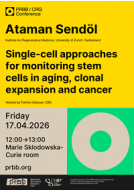 17/04/202612:00MARIE CURIEPRBB-CRG SessionsAtaman SendölInstitute for Regenerative Medicine (IREM), University of Zurich"Single-cell approaches for monitoring stem cells in aging, clonal expansion and cancer"Host: Fatima GebauerAbstract:Clonal expansions of stem cell populations are widespread in normal epithelia and can remodel entire tissues over a lifetime. However, how these clonal expansions impact tissue function and why only a small fraction of these expanded clones undergo malignant transformation remains poorly understood. In this talk, I will discuss our recent development of in vivo single-cell approaches to dissect stem cell behavior across clonal expansion, aging and...