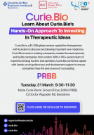 31/03/202609:30MARIE CURIECRGCurie.BioCurie.BioLearn About Curie.Bio's. Hands-On Approach To Investing In Therapeutic IdeasAbstract:Curie.Bio, invites the CRG and PRBB scientific community to a seminar for Researchers PIs, PhD students, technicians and postdoctoral fellows interested in turning strong science into real-world impact.
