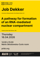16/04/202614:00MARIE CURIEPRBB-CRG SessionsJob DekkerUMass Chan Medical School"A pathway for formation of an RNA-mediated nuclear compartment"Host: Marc Marti-RenomAbstract:Mammalian nuclei are spatially compartmentalized so that active and inactive segments of the genome occupy separate sub-nuclear neighborhoods. Compartments are often found in association with nuclear structures such as the nuclear lamina, nucleoli, and nuclear speckles (speckles), suggesting links between them. The mechanisms by which compartments form remain largely unknown. Speckles are large nuclear bodies that contain high concentrations of RNA...