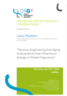 30/04/202609:00R_473.10_AULASystems Biology ProgrammeLeon PeshkinHarvard Medical School: Boston, MA, US - Principal Research Faculty, Systems BiologyReverse Engineering Anti-Aging Interventions from Pharmaco-biology in Model OrganismsHost: Latorre Crespo, EricAbstract:The aging process represents one of biology's most complex system-level phenomena. A major challenge is moving from observing its correlates to identifying its fundamental, targetable bottlenecks. In this talk, I will explore a reverse-engineering approach, using pharmacological interventions in model organisms to deconstruct the mechanisms of aging and pinpoint promising avenues for intervention. I will discuss how we can leverage existing biological data and what new,...