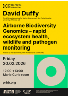20/02/202612:00MARIE CURIEPRBB-CRG SessionsDavid DuffyThe Whitney Laboratory for Marine Bioscience & Sea Turtle Hospital, University of Florida"Airborne Biodiversity Genomics – rapid ecosystem health, wildlife and pathogen monitoring"Host: Max Stammnitz, Postdoc CommunityAbstract:Genomic technologies are changing our understanding of wildlife diseases, such as a sea turtle tumor panzootic (animal pandemic). Simultaneously, the convergence of advanced genomic sequencing technologies and innovative environmental sampling approaches are enabling discovery at whole biome scales and across the tree of life, from microbes to mammals.