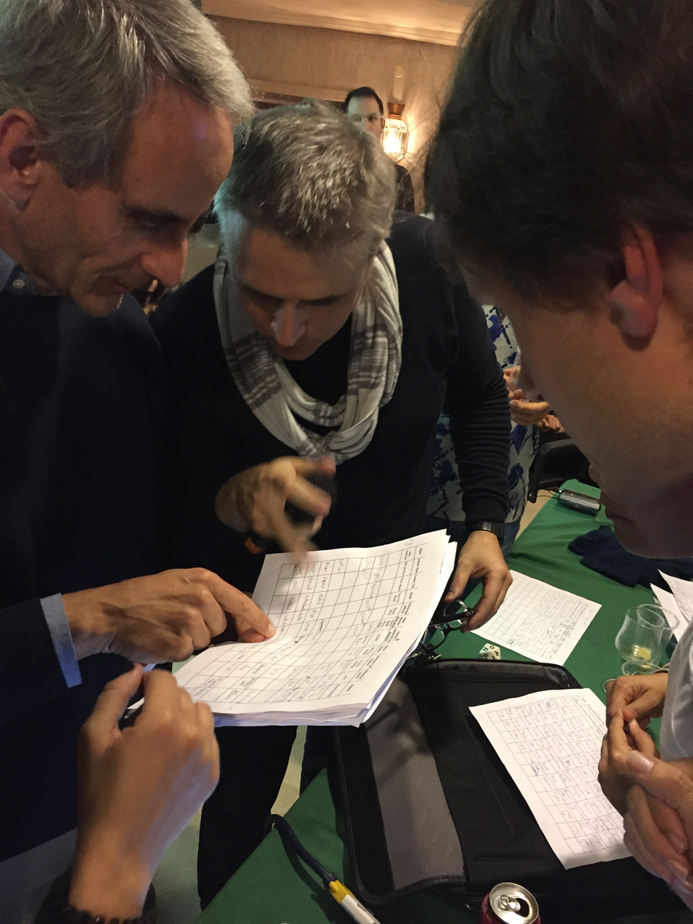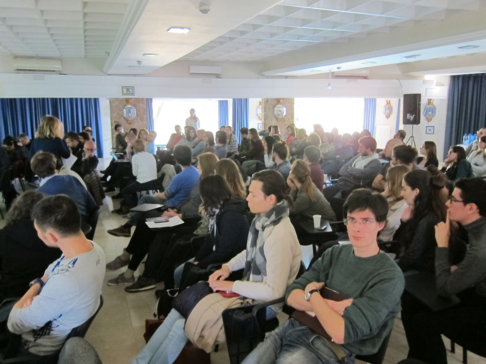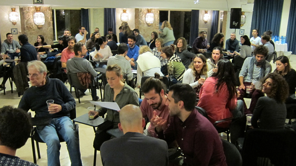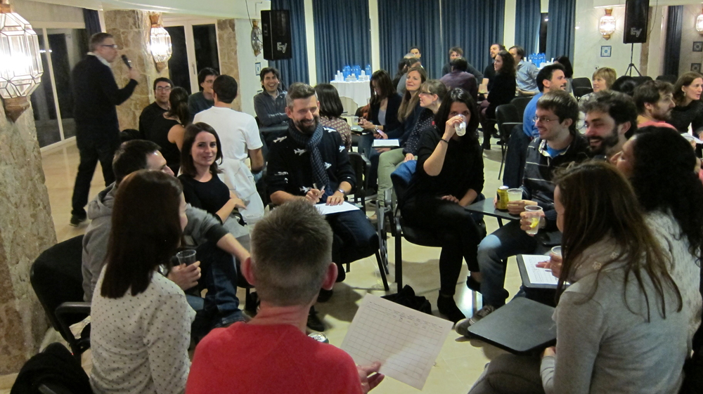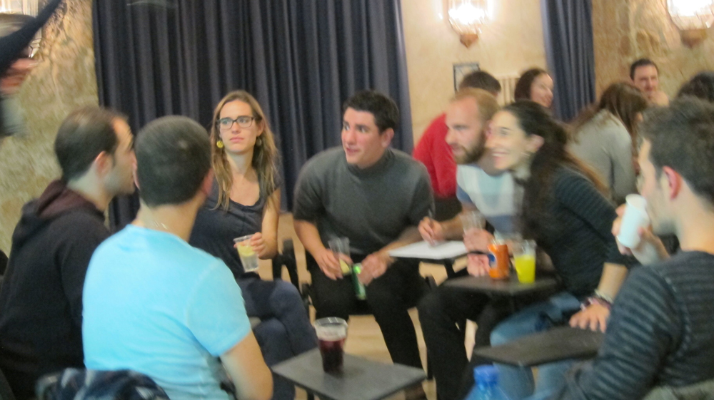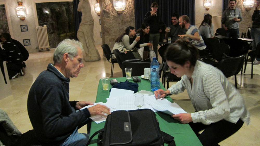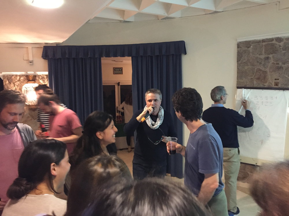 After dinner we played another 10 year-olds-game, this time in our conference room: Teams of about ten, on a command given by our game master (Guille) raced to fill out a form with cities, countries, famous artists, scientists, scientific methods, research institutes, diseases etc., starting with the same letter (e.g., Reno, Ruanda, Renoir etc.) and differing at each round. Once our arbiter (Luciano) accepted the selections presented, a winning team and two runner-ups were determined. Very interesting to hear and see so many scientists or want-to-become-scientists shouting, pushing, bargaining, cheating etc. The night was rounded up by walking to the local disco, as in previous years, or simply falling exhausted in bed.